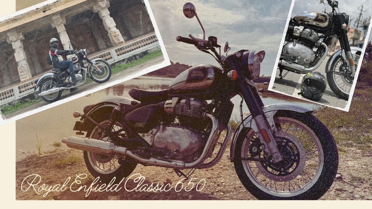 ವರ್ಷದಿಂದ ವರ್ಷಕ್ಕೆ ರಾಯಲ್ ಎನ್ಫೀಲ್ಡ್ ತನ್ನ ಬೈಕ್ಗಳಲ್ಲಿ ಸಾಕಷ್ಟು ಬದಲಾವಣೆಗಳನ್ನು ಮಾಡಿಕೊಳ್ಳುತ್ತಲೇ ಬಂದಿದೆ. ಇಂಜಿನ್ಗಳು ಅಪ್ಗ್ರೇಡ್ ಆಗಿವೆ. ಲುಕ್ಕು ಸ್ಟೈಲಿಶ್ ಆಗಿವೆ. ಆಧುನಿಕ ಕಾಲಕ್ಕೆ ತಕ್ಕಂತೆ ರೂಪ ಬದಲಾಗಿವೆ. ಆ ಪ್ರಕಾರ ಹೊಸ ಕಾಲಕ್ಕೆ ತಕ್ಕಂತೆ ರೂಪಿಸಿರುವ ಕಾಲಾತೀತ ರೂಪದ ಬೈಕ್ ರಾಯಲ್ ಎನ್ಫೀಲ್ಡ್ ಕ್ಲಾಸಿಕ್ 650.ಕಪ್ಪು ಬಣ್ಣದ ಕ್ಲಾಸಿಕ್ 650 ಅನ್ನು ಎಲ್ಲೋ ಒಮ್ಮೆ ನೋಡಿದರೆ ಸಾಕು, ಥಟ್ ಅಂತ ಗಮನ ಸೆಳೆಯುತ್ತದೆ. ಅಷ್ಟು ಮನಮೋಹಕ ವಿನ್ಯಾಸ. ಅದರ ಗಾಢ ಕಪ್ಪು, ಬೆಳ್ಳಿ ಬಣ್ಣದ ಗಾರ್ಡ್, ಪೆಟ್ರೋಲ್ ಟ್ಯಾಂಕ್ ಮೇಲಿನ ಬಂಗಾರ ಬಣ್ಣದ ಗೆರೆ, ಟ್ವಿನ್ ಸಿಲಿಂಡರ್, ಹೆಡ್ಲೈಟ್ ಎಲ್ಲವೂ ಸೇರಿ ಇದಕ್ಕೊಂದು ಅಪೂರ್ವವಾದ ಘನತೆವೆತ್ತ ಲುಕ್ ಕೊಟ್ಟಿವೆ. ರೈಡರ್ ಕುಳಿತಾಗ ಒಂದು ಚೆಂದವಾದರೆ, ಆ ಬೈಕ್ ಎಲ್ಲಿ ನಿಲ್ಲಿಸಲಾಗುತ್ತದೆಯೋ ಆ ವಾತಾವರಣಕ್ಕೇ ಒಂದು ಗೌರವ.