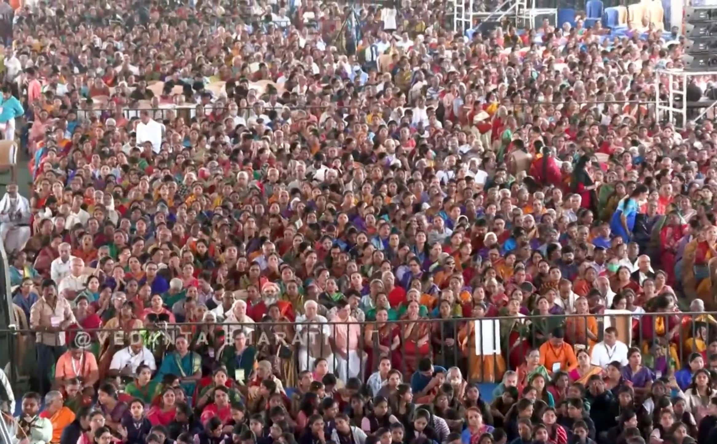 ಮಹಾ ಸಮರ್ಪಣೆನಾಲ್ಕು ದಿನಗಳ ‘ವಿವೇಕ ದೀಪ್ತಿ’ ಬೃಹತ್ ಸಮಾವೇಶದ ಮೂರನೇ ದಿನವಾದ ಶುಕ್ರವಾರ 50-60 ಸಾವಿರಕ್ಕೂ ಅಧಿಕ ಜನರು ಪಾಲ್ಗೊಂಡು ಶ್ರೀ ಶಂಕರಭಗವತ್ಪಾದ ವಿರಚಿತ ದಕ್ಷಿಣಾ ಮೂರ್ತಿ ಅಷ್ಟಕದ ಮಹಾ ಸಮರ್ಪಣೆಗೆ ಸಾಕ್ಷಿಯಾದರು. ವೇದಮೂತಿ ದಿನೇಶ್ ಹೆಗಡೆ ಅವರು ಈ ಕಾರ್ಯಕ್ರಮ ನಡೆಸಿಕೊಟ್ಟರು. ಪ್ರಾಂಗಣದಲ್ಲಿ ಸೇರಿದ್ದ ಸಾವಿರಾರು ಏಕಕಂಠದಲ್ಲಿ ದಕ್ಷಿಣಾಮೂರ್ತಿ ಸ್ತೋತ್ರವನ್ನು ಪಠಿಸಿ ಗುರುಗಳಿಗೆ ಅರ್ಪಿಸಿದರು.