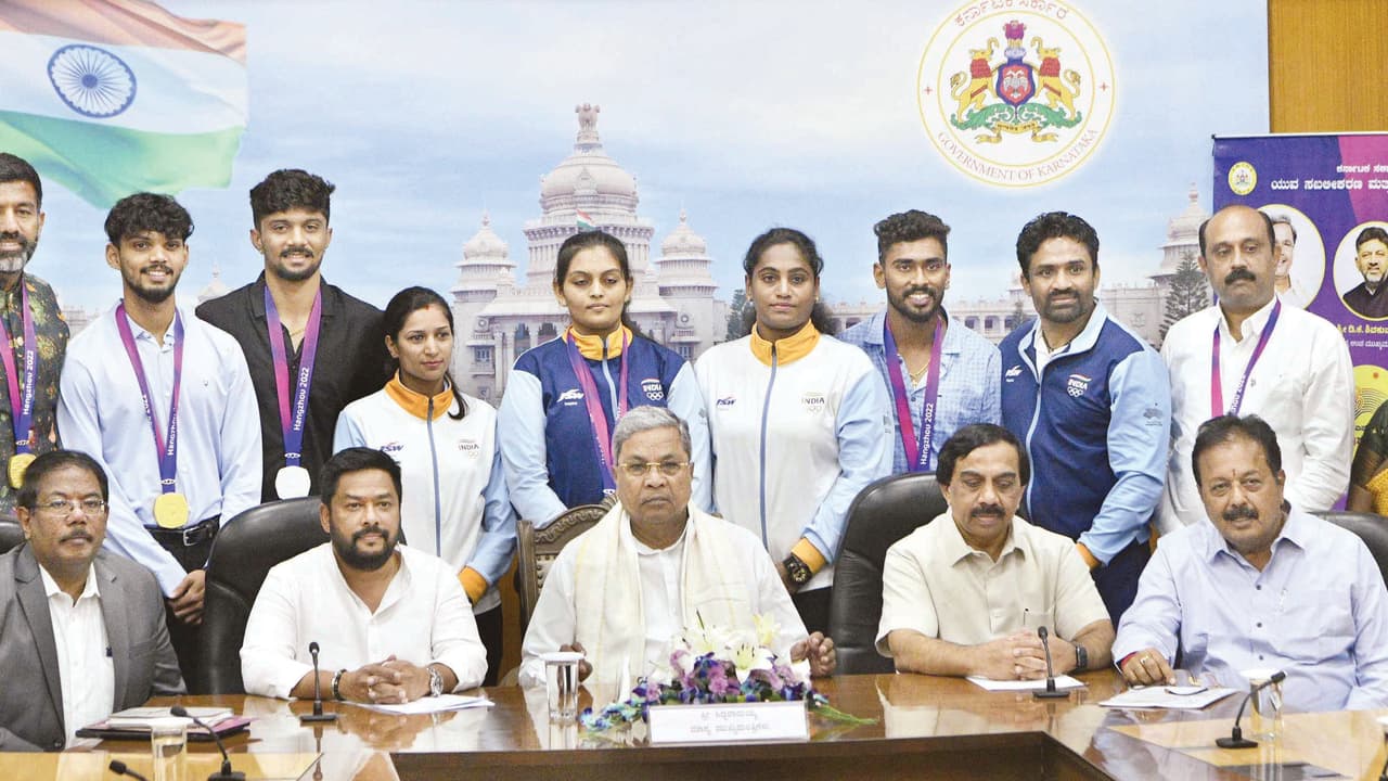 ಏಷ್ಯನ್ ಗೇಮ್ಸ್ ಪದಕ ವಿಜೇತರಿಂದ ರಾಜ್ಯದ ಗೌರವ ಹೆಚ್ಚಳ: ಸಿದ್ದರಾಮಯ್ಯ ಪ್ರಶಂಸೆಏಷ್ಯಾಡ್ನಲ್ಲಿ ಚಿನ್ನ ಗೆದ್ದವರಿಗೆ ₹25 ಲಕ್ಷ, ಬೆಳ್ಳಿ ವಿಜೇತರಿಗೆ ₹15 ಲಕ್ಷ, ತರಬೇತುದಾರರಿಗೆ ₹5 ಲಕ್ಷ ರು. ನೀಡಿ ಸಮ್ಮಾನ.