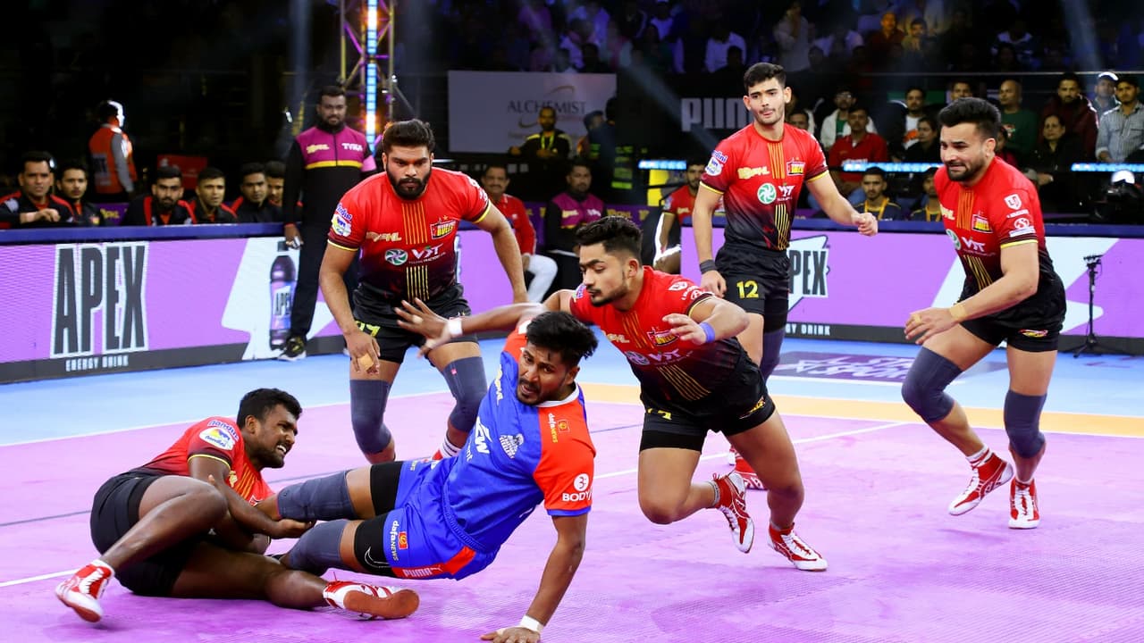ಪಂದ್ಯದಲ್ಲಿ1 ಅಂಕ ಗಳಿಸಿದ ವಿಕಾಸ್ ಕಂಡೋಲಾ ಲೀಗ್ನಲ್ಲಿ800 ರೇಡಿಂಗ್ ಪಾಯಿಂಟ್ಸ್ ಕಲೆಹಾಕಿದ ಸಾಧನೆ ಮಾಡಿದರು.