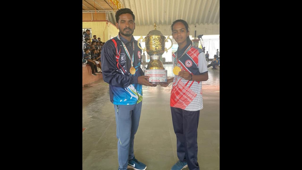 7ಕೆಎಂಎನ್ ಡಿ19ಟ್ರೋಫಿಯೊಂದಿಗೆ ಎ.ಎನ್.ವಂದನಾ ಮತ್ತು ತರಬೇತುದಾರ ಕೆ.ಎನ್.ಮಲ್ಲೇಶ್.