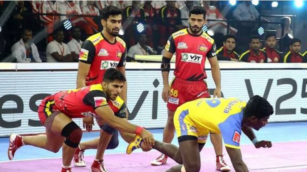 ಎಡ ಬದಿಯ ರೇಡರ್ ಅಕ್ಷಿತ್ ಅವರ ಮಿಂಚಿನ ಆಟದ ಬಲದಿಂದ ರೇಡಿಂಗ್ ವಿಭಾಗದಲ್ಲಿಸಮಬಲದ ಹೋರಾಟ ನೀಡಿದ ಹೊರತಾಗಿಯೂ ಟ್ಯಾಕಲ್ನಲ್ಲಿಸಂಪೂರ್ಣ ವೈಫಲ್ಯ ಅನುಭವಿಸಿದ ಬೆಂಗಳೂರು ಬುಲ್ಸ್ ತಂಡ ಪಂದ್ಯದ ಮೊದಲ ಅವಧಿಯ ಅಂತ್ಯಕ್ಕೆ 14-25 ಅಂಕಗಳ ಅಂತರದಲ್ಲಿಹಿನ್ನಡೆ ಅನುಭವಿಸಿತು.