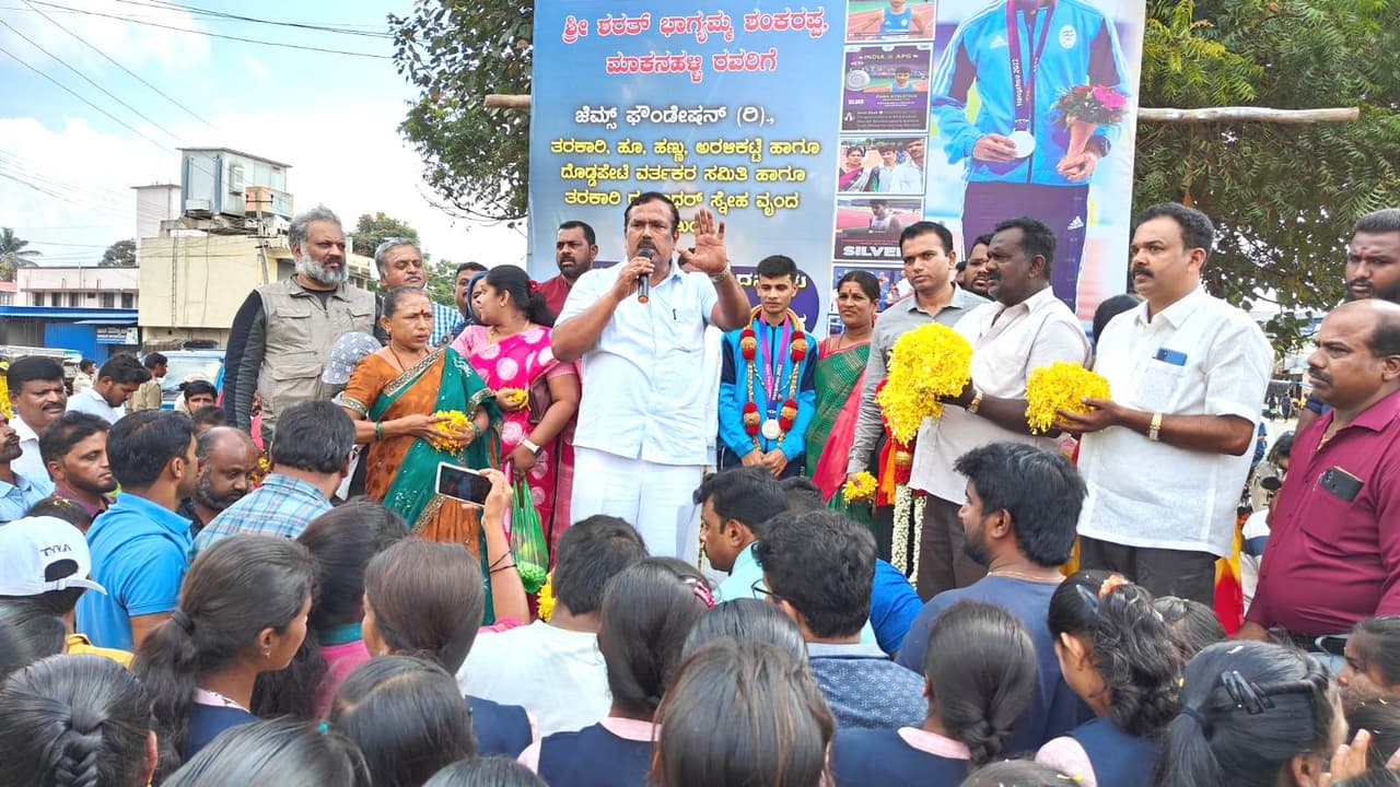 ಅಂತರಾಷ್ಟ್ರೀಯ ಕ್ರೀಡೆಗಳಲ್ಲಿ ಭಾಗವಹಿಸಿದ ಕ್ರೀಡಾಪಟುಗಳಿಗೆ ಚಿನ್ನದ ಪದಕ ಪಡೆದವರಿಗೆ ಕ್ಲಾಸ್-1 ಮತ್ತು ಬೆಳ್ಳಿ ಪದಕ ಪಡೆದವರಿಗೆ ಕ್ಲಾಸ್-2 ಉದ್ಯೋಗವನ್ನು ಸರ್ಕಾರಿ ಇಲಾಖೆಗಳಲ್ಲಿ ನೇರ ನೇಮಕಾತಿ ಮೂಲಕ ನೀಡುವುದಾಗಿ ಮುಖ್ಯಮಂತ್ರಿಗಳೇ ಘೋಷಿಸಿದ್ದು, ಪ್ಯಾರಾ ಏಷ್ಯನ್ ಗೇಮ್ಸ್ನಲ್ಲಿ ನಮ್ಮ ತಾಲೂಕಿನ ಶರತ್ ಬೆಳ್ಳಿ ಪದಕ ಪಡೆದು ರಾಜ್ಯಕ್ಕೆ ಕೀರ್ತಿ ತಂದಿದ್ದು, ಈತನಿಗೆ ಮುಖ್ಯಮಂತ್ರಿಗಳೇ ಹೇಳಿದಂತೆ ಸರ್ಕಾರಿ ಉದ್ಯೋಗ ನೀಡಿ ಒಲಂಪಿಕ್ ಮಟ್ಟದ ಕ್ರೀಡೆಗಳಿಗೆ ಪ್ರೋತ್ಸಾಹ ನೀಡಬೇಕು. ಲೋಕೇಶ್ವರ, ರಾಷ್ಟ್ರೀಯ ಖೋ-ಖೋ ಸಂಸ್ಥೆ ಉಪಾಧ್ಯಕ್ಷರು.ಶರತ್ ತಂದೆ ತಾಯಿಯರಾದ ಭಾಗ್ಯಮ್ಮ, ಶಂಕರಪ್ಪ ಮತ್ತು ಕುಟುಂಬ ವರ್ಗದವರು. ತಹಸೀಲ್ದಾರ್ ಪವನ್ಕುಮಾರ್, ನಗರಸಭೆ ಪೌರಾಯುಕ್ತ ವಿಶ್ವೇಶ್ವರ ಬದರಗಡೆ, ಬಿಇಒ ಚಂದ್ರಯ್ಯ, ನಗರಸಭೆ ಸದಸ್ಯರಾದ ಸೊಪ್ಪುಗಣೇಶ್, ಭಾರತಿ, ಆಶೀಫಾಬಾನು, ಕುಮಾರ್ ಆಸ್ಪತ್ರೆಯ ಡಾ. ಶ್ರೀಧರ್, ಮುಖಂಡರಾದ ಡಾಬಾ ಶಿವಶಂಕರ್, ಕೆ.ಆರ್, ದೇವರಾಜು, ಬಸವರಾಜು, ಕುಮಾರ್, ವನಿತಾ ಪ್ರಸನ್ನ, ತರಕಾರಿ ಗಂಗಾಧರ್, ಗುರುಸ್ವಾಮಿ, ರೇಣು, ಪ್ರಭಾ ವಿಶ್ವನಾಥ್ ಭಾಗವಹಿಸಿದ್ದರು.