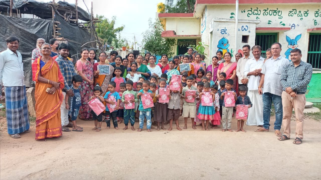 10ಕೆಕೆಆರ್1:ಕುಕನೂರು ತಾಲೂಕಿನ ತಳಕಲ್ ಗ್ರಾಮದ ಎರಡು ಅಂಗನವಾಡಿ ಕೇಂದ್ರಗಳಿಗೆ 40 ಮಕ್ಕಳಿಗೆ ತಳಕಲ್ ಗ್ರಾಪಂ ಸದಸ್ಯ ಉಮೇಶಗೌಡ ಪೊಪಾ ಹಾಗು ಡಿ ವಿರುಪಾಕ್ಷಗೌಡ ಸಮವಸ್ರ್ತ ವಿತರಿಸಿದರು. | Kannada Prabha